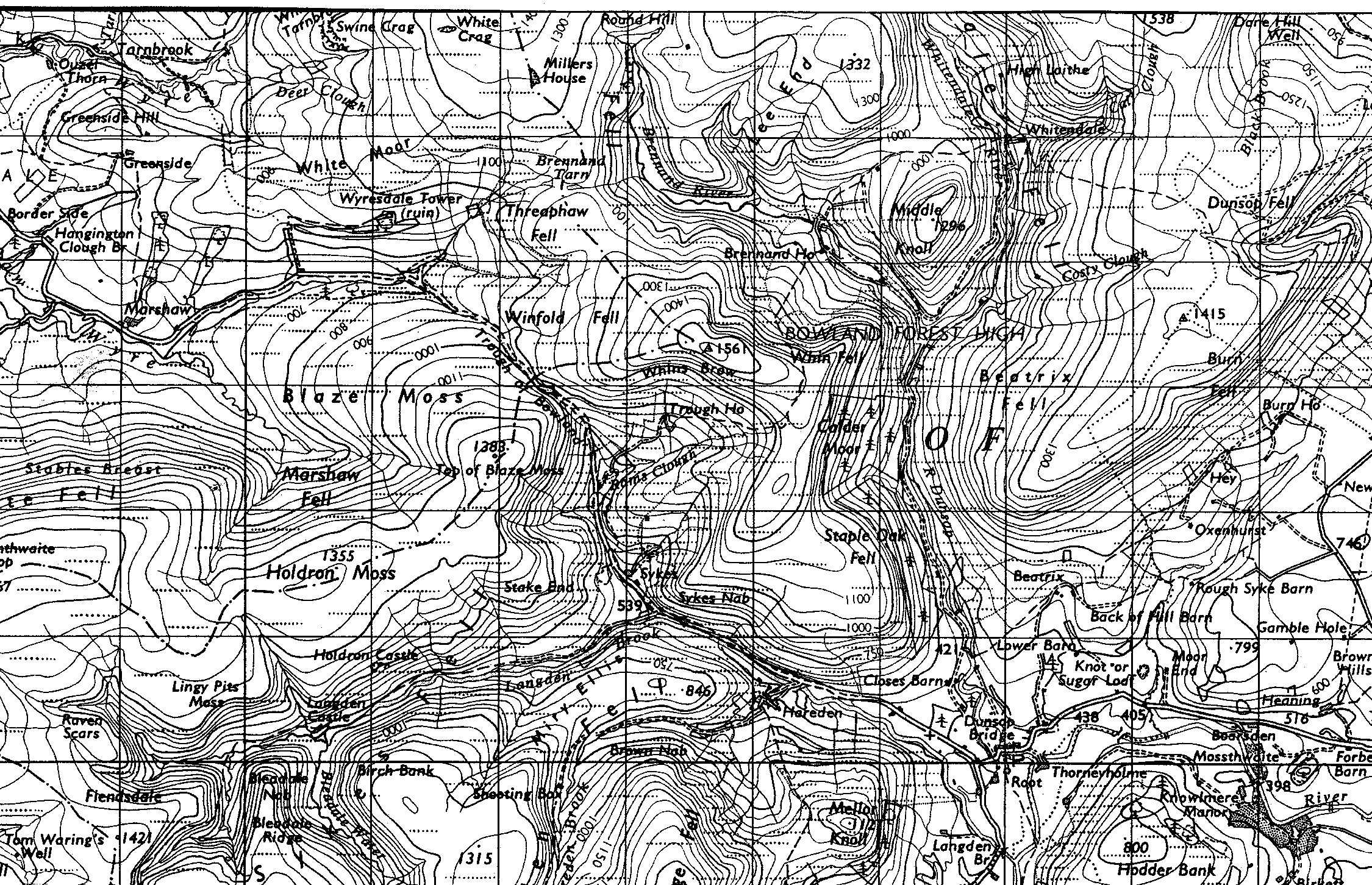 - The road through the wild terrain of the Trough of Bowland, Marshaw is to the upper middle left (west), Dunsop Bridge is to the lower right (south east) and Root Farm is below it at “Root”.